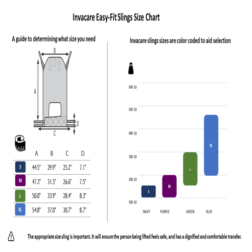 The Invacare Premier Series Easy-Fit Sling is a general purpose sling designed for the majority of sling users, including amputees. This versatile sling provides full head and neck support and can easily be removed or applied to a user in a seated or supine position. Use with the Invacare Reliant 450/600, Jasmine and 9805P Lifts.