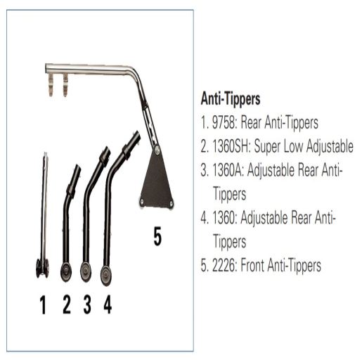• These Rear Anti-Tippers are adjustable and can be used with wheelchairs that have 6" front casters