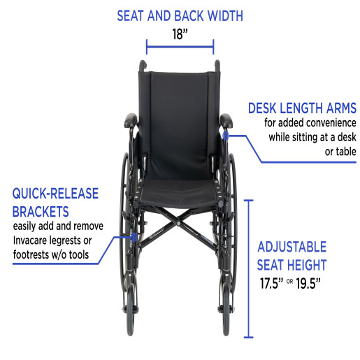 Invacare 9000 XT Wheelchair, Fixed Height Desk Length Space Saver Arm, 18"x16"