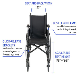 • Dual-axle allows adjustable seat-to-floor height from Adult (19.5”) to Hemi (17.5”)