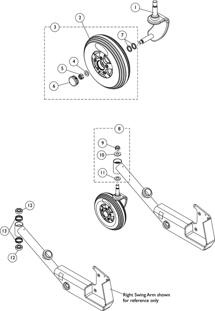 | A | Individual components are non-serviceable. If a custom needs to replace the (2) caster bearings, you must order a new Rear Caster part #1162534. |