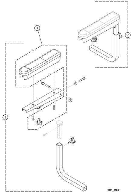 | 3 | 1186192 | Kit, Armpad Replacement Includes: (1) ea. Knob (1) ea. Armrest Pad (2) ea. Socket Head Screw | 1 | 1 |